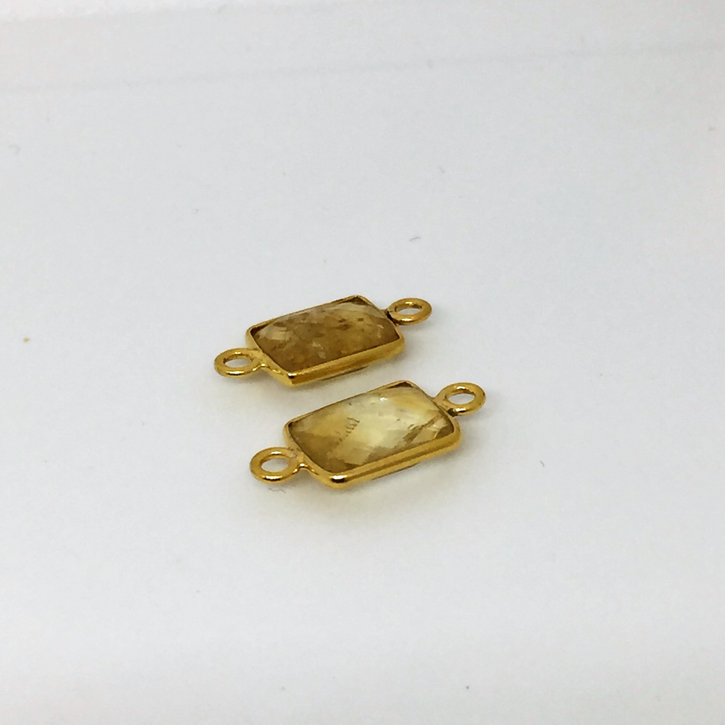 Rectangle en citrine 10x8mm serti plaqué or 2 anneaux.