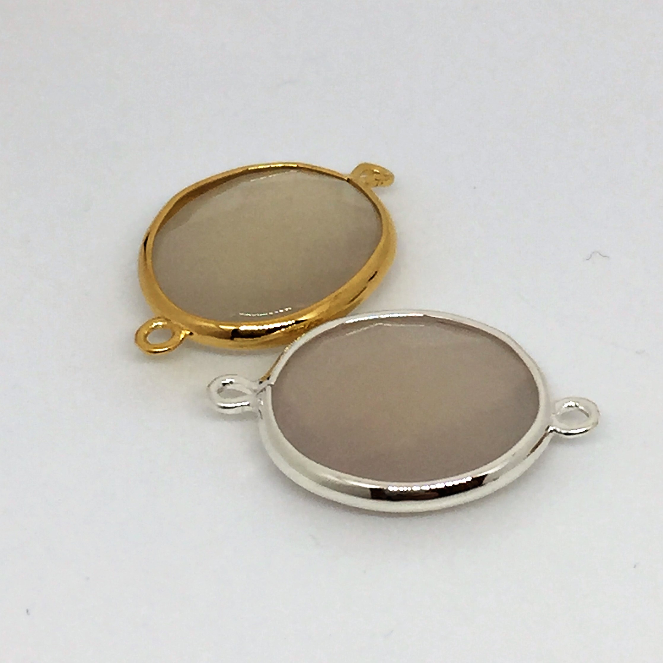 Connecteur 16x18mm en agate neige serti plaqué or et plaqué argent.