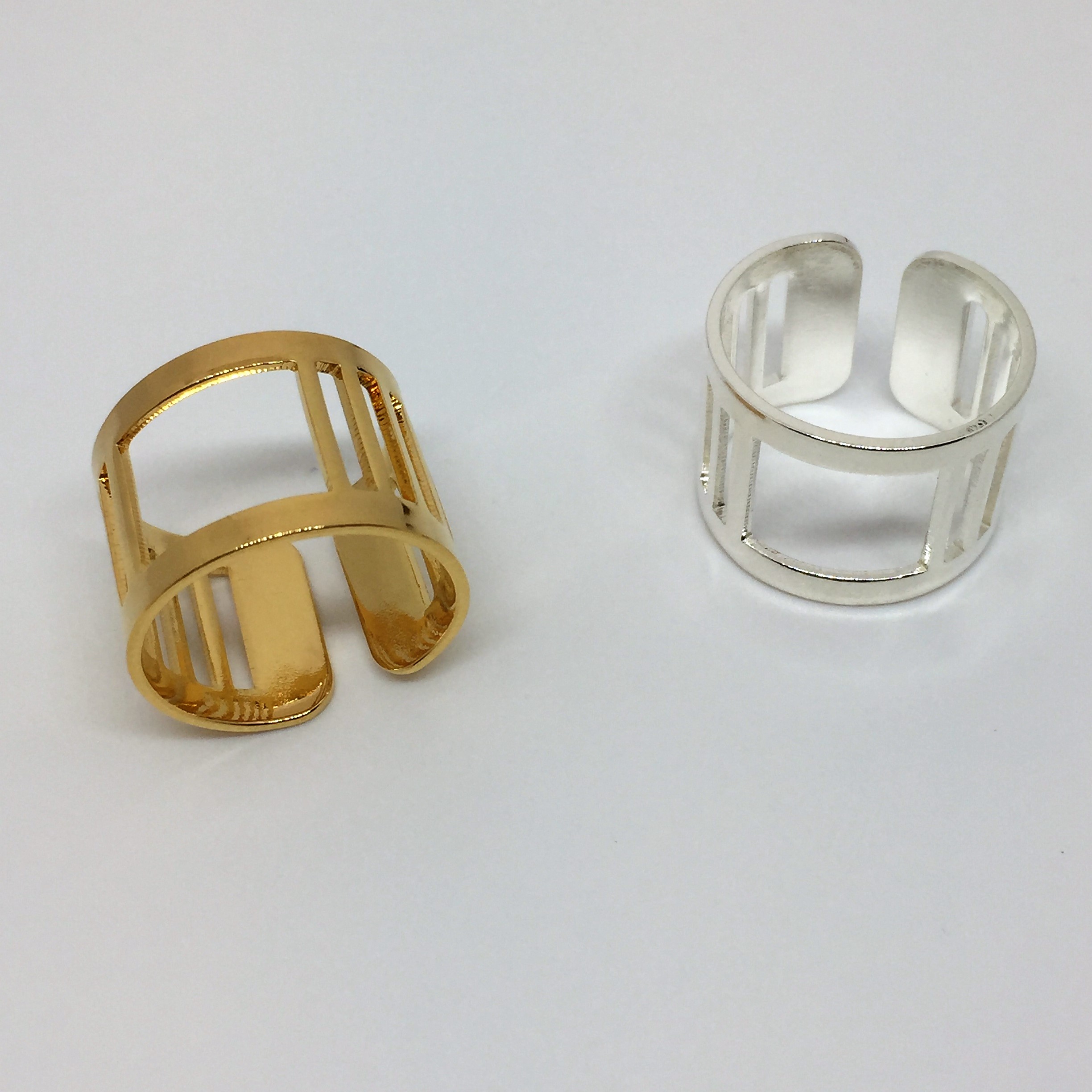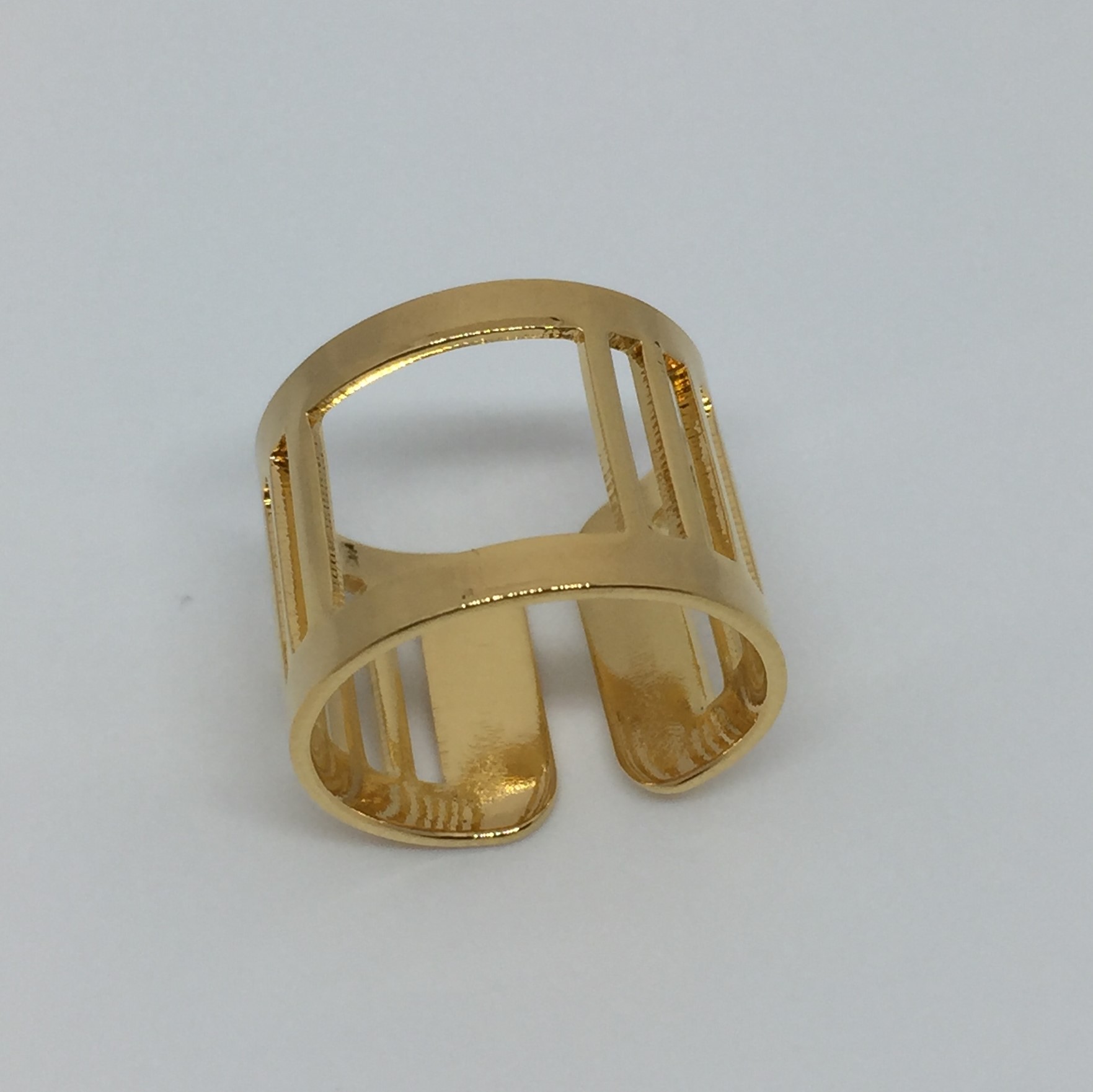 Bague rectangle évidé 15mm plaqué or et plaqué argent