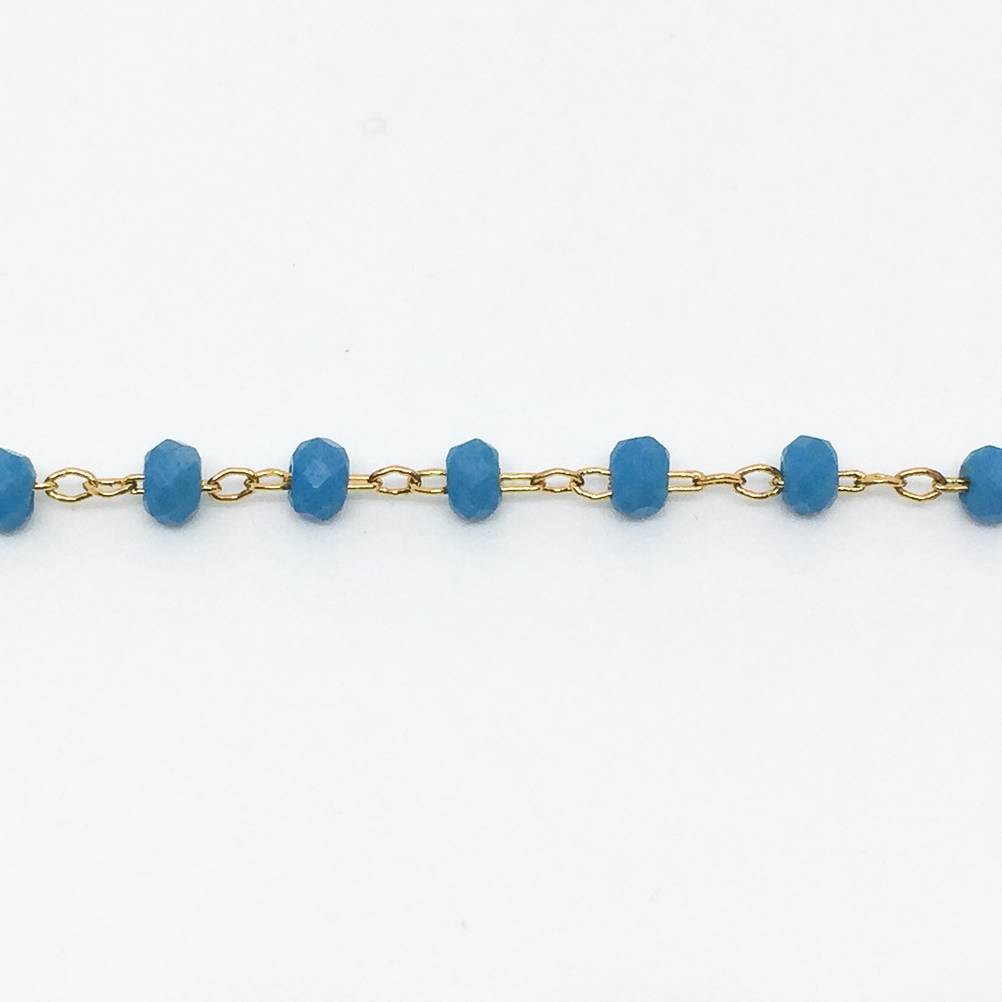 Bracelet or, et perles de verre bleu intense.