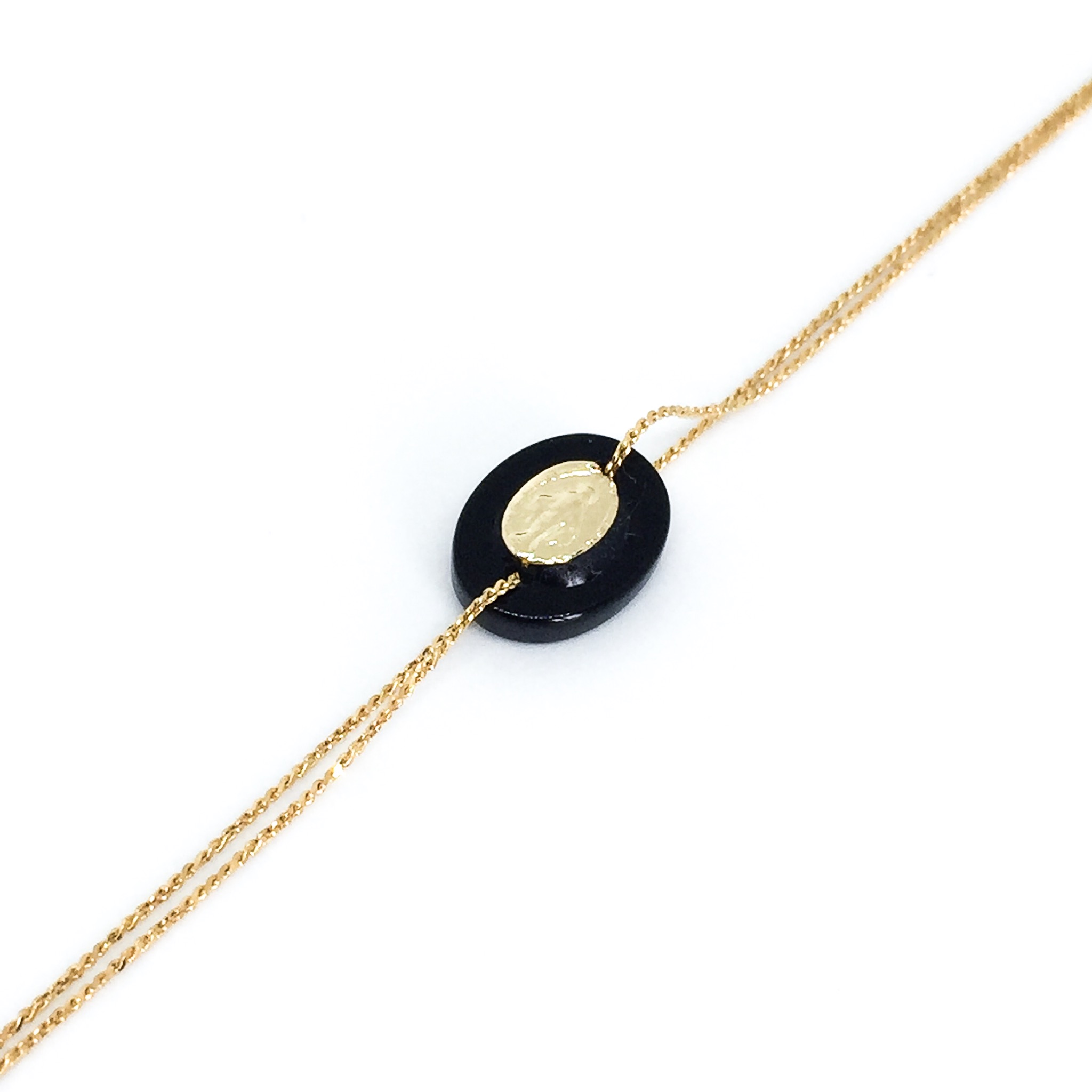 Bracelet or, pastille en onix avec vierge.