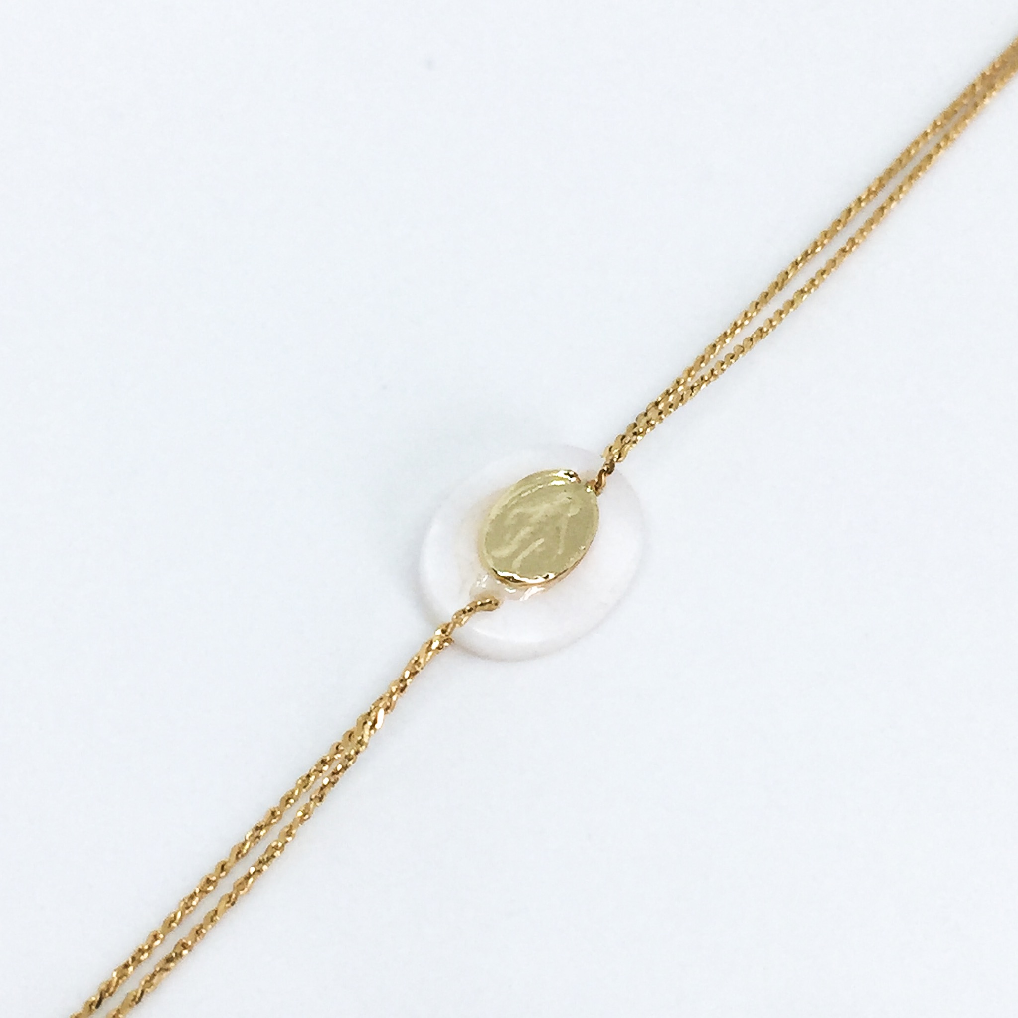 Bracelet or, pastille en nacre avec vierge.