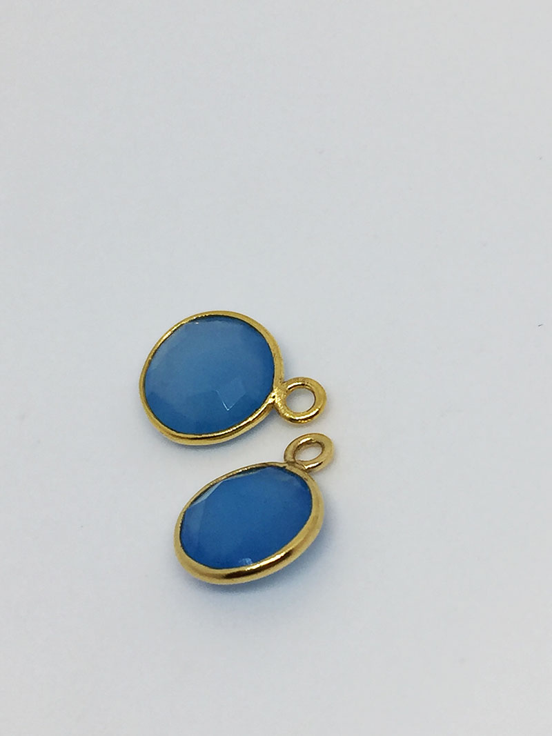 Pastille en calcédoine bleu 8mm, serti plaqué or 1 anneau.