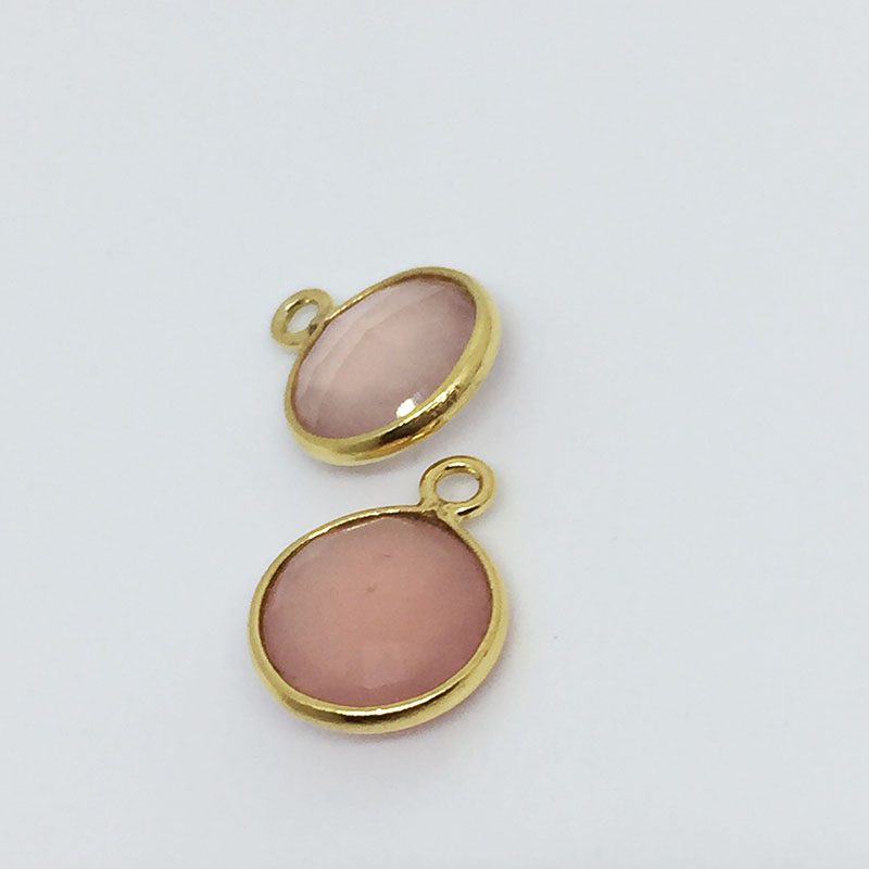 Pastille en calcédoine rose 8mm, serti plaqué or 1 anneau.