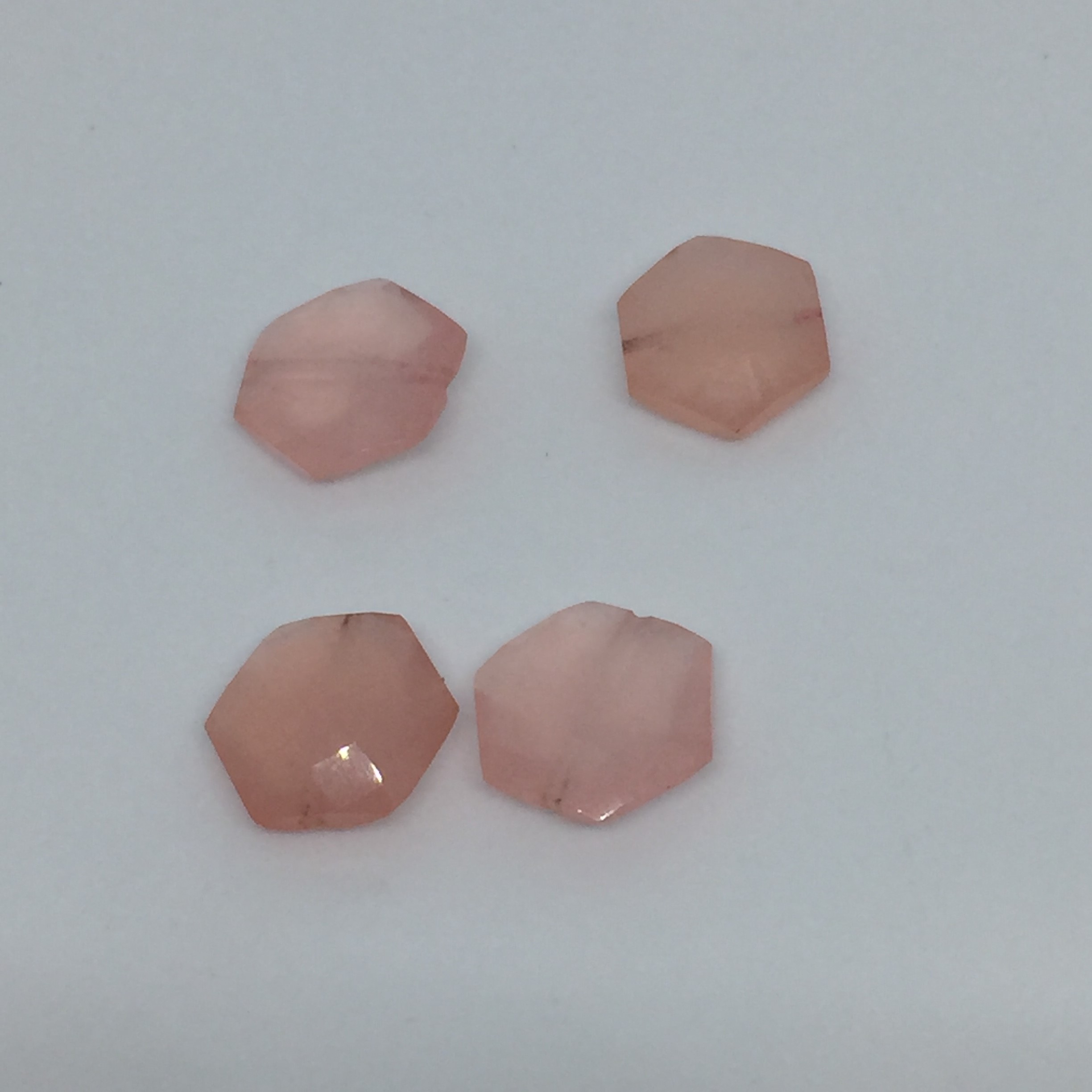 Hexagone en calcédoine rose de 8mm, perçage parfait de 0.5mm de diamètre.