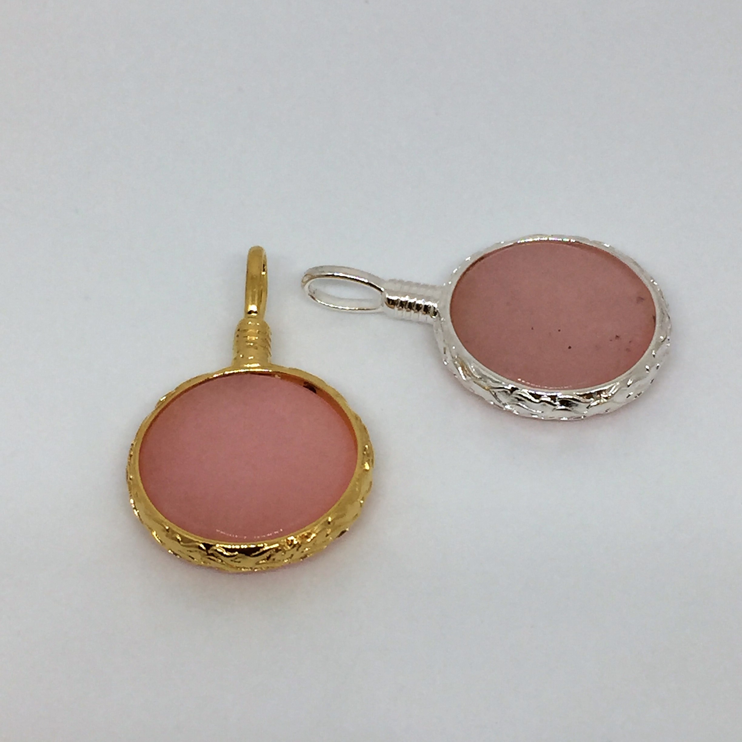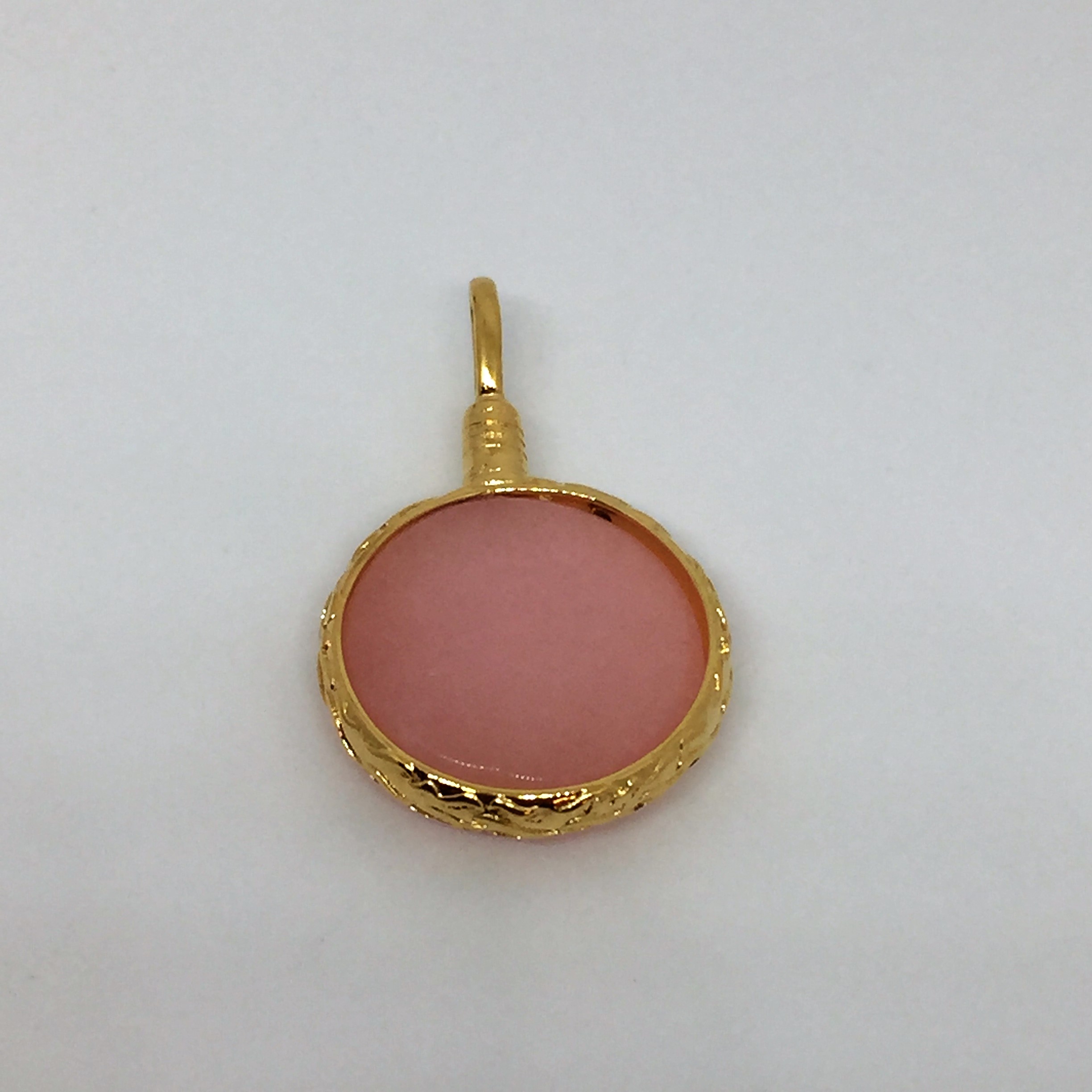 Pendentif en calcédoine rose 20mm plaqué or et plaqué argent.