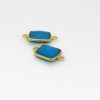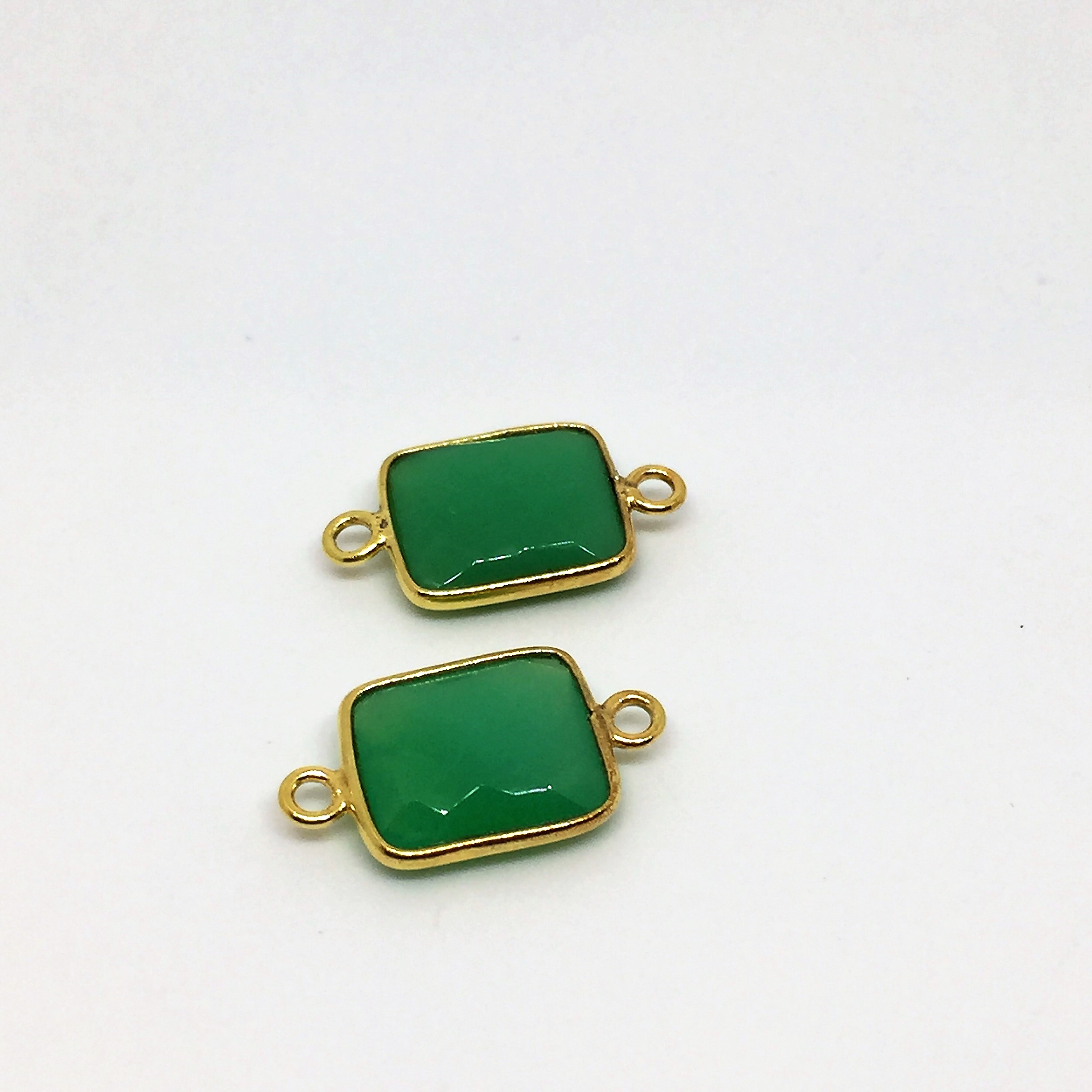 Rectangle en calcédoine verte serti plaqué or 2 anneaux.