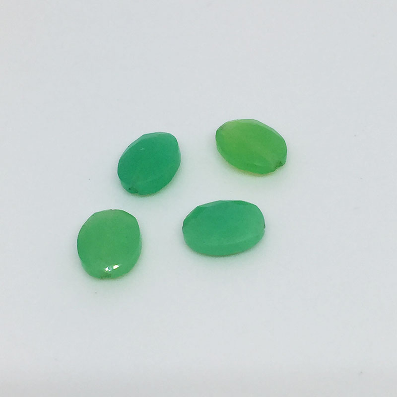 Ovale en calcédoine verte de 6x8mm, perçage parfait de 0.5mm de diamètre.