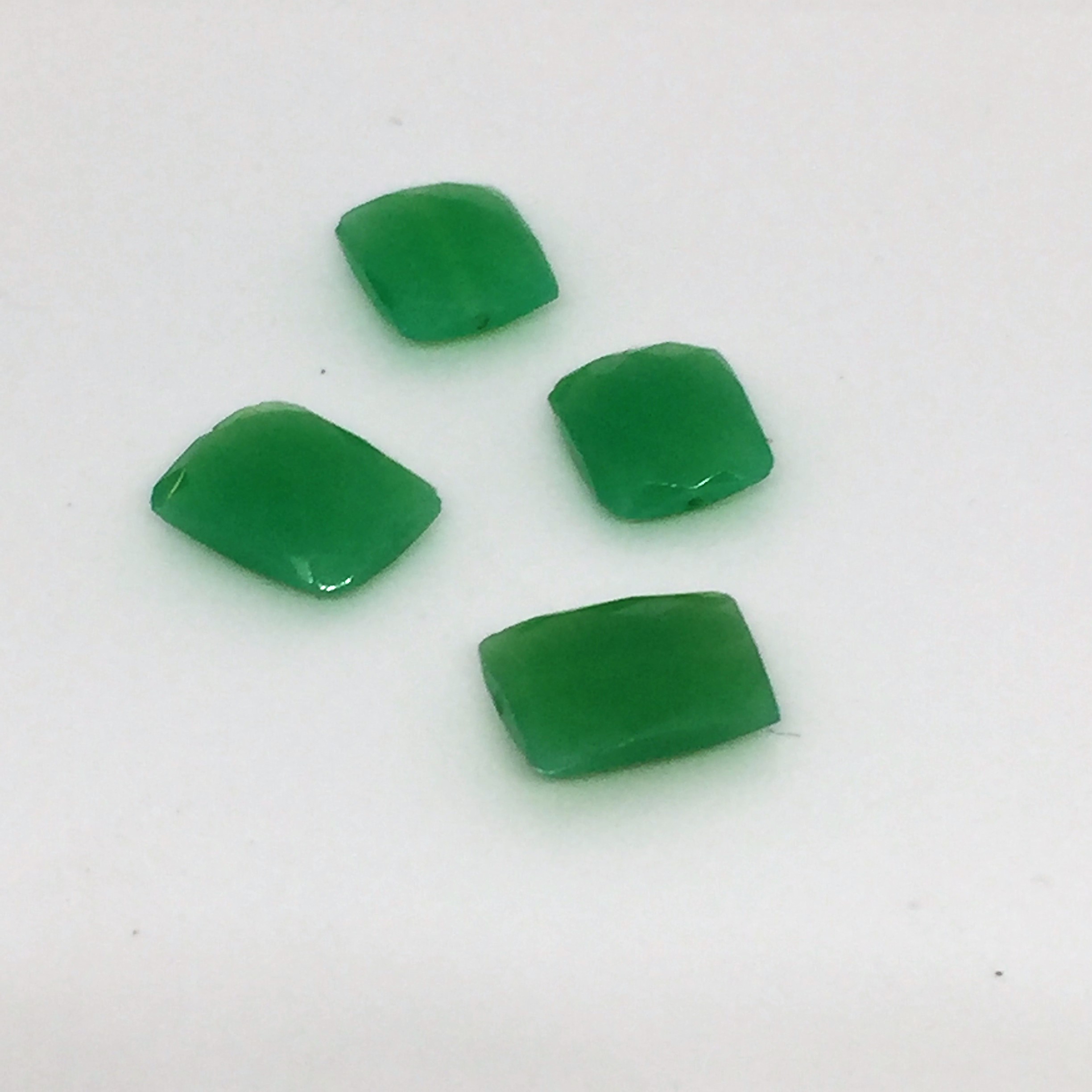 Rectangle en calcédoine verte, perçage parfait de 0.5mm de diamètre.