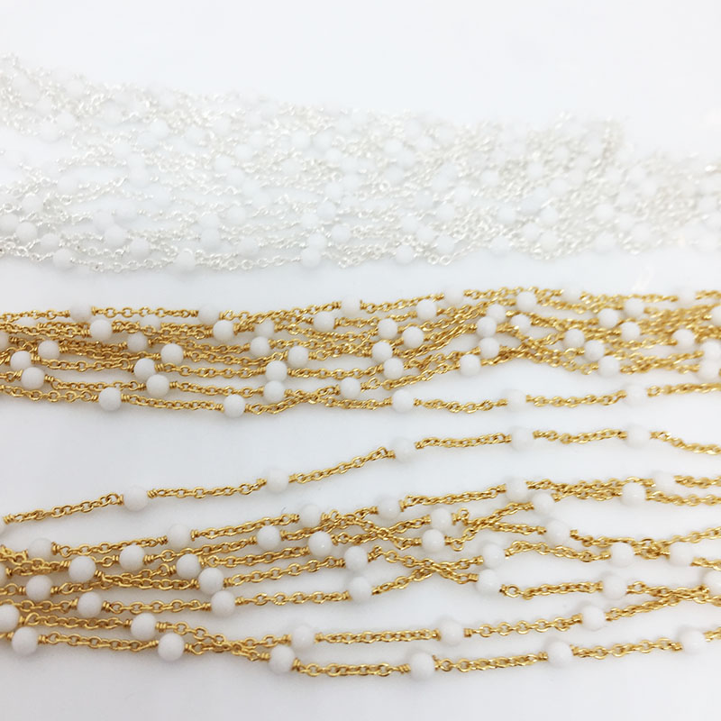 Chaine plaqué or et plaqué argent agate blanche 1mm