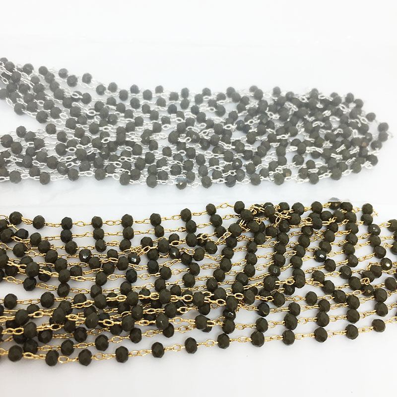 Chaine avec perles de verre 3mm marron plaqué or et plaqué argent