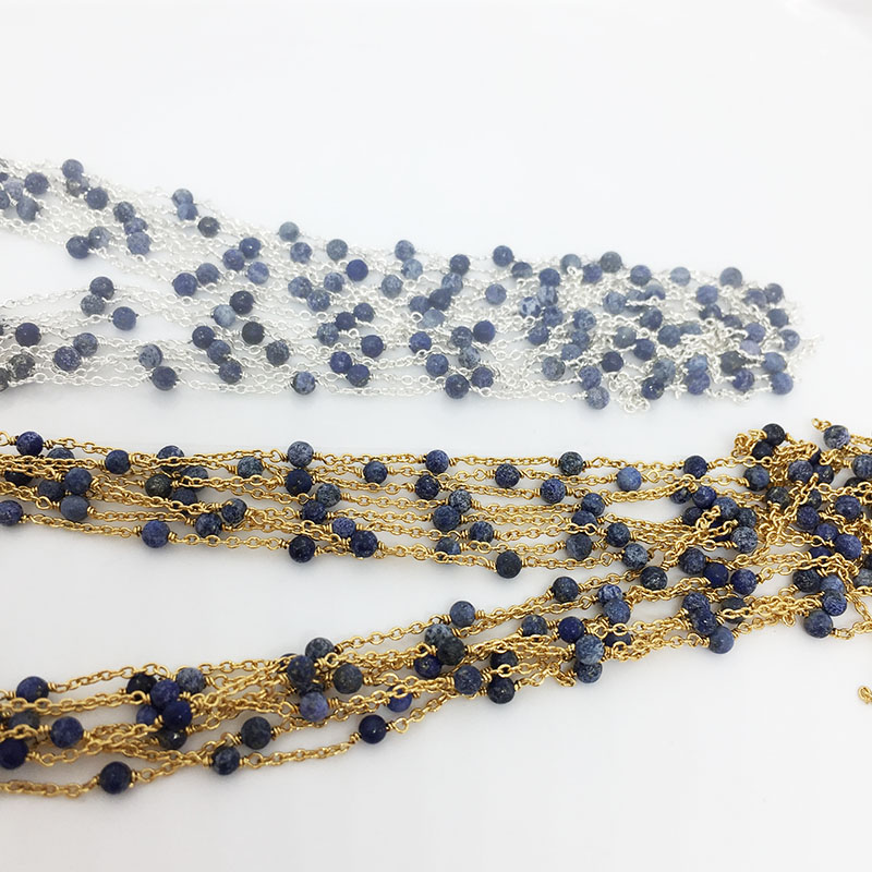 Chaine plaqué or et plaqué argent lapis lazuli 1mm
