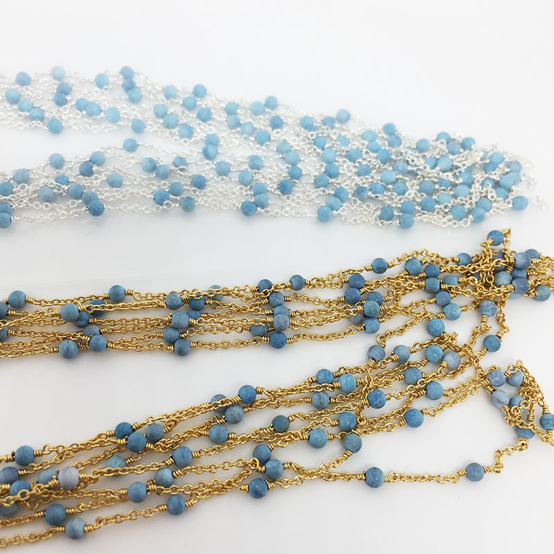Chaine plaqué or et plaqué argent magnésite turquoise 1mm