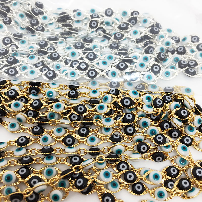 Chaine œil noir et blanc plaqué or et plaqué argent