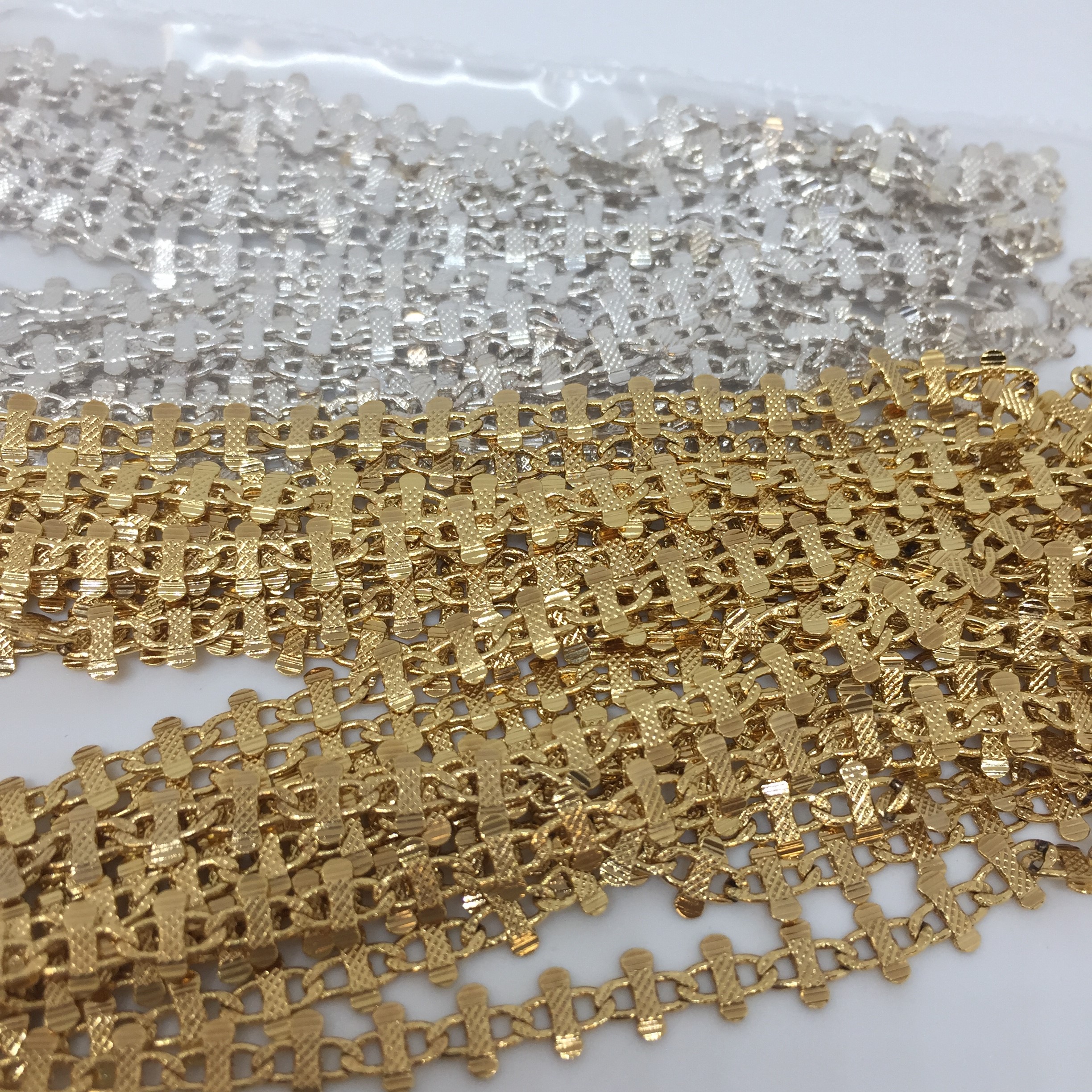 Chaine plate 6x6mm, plaqué or, plaqué argent.