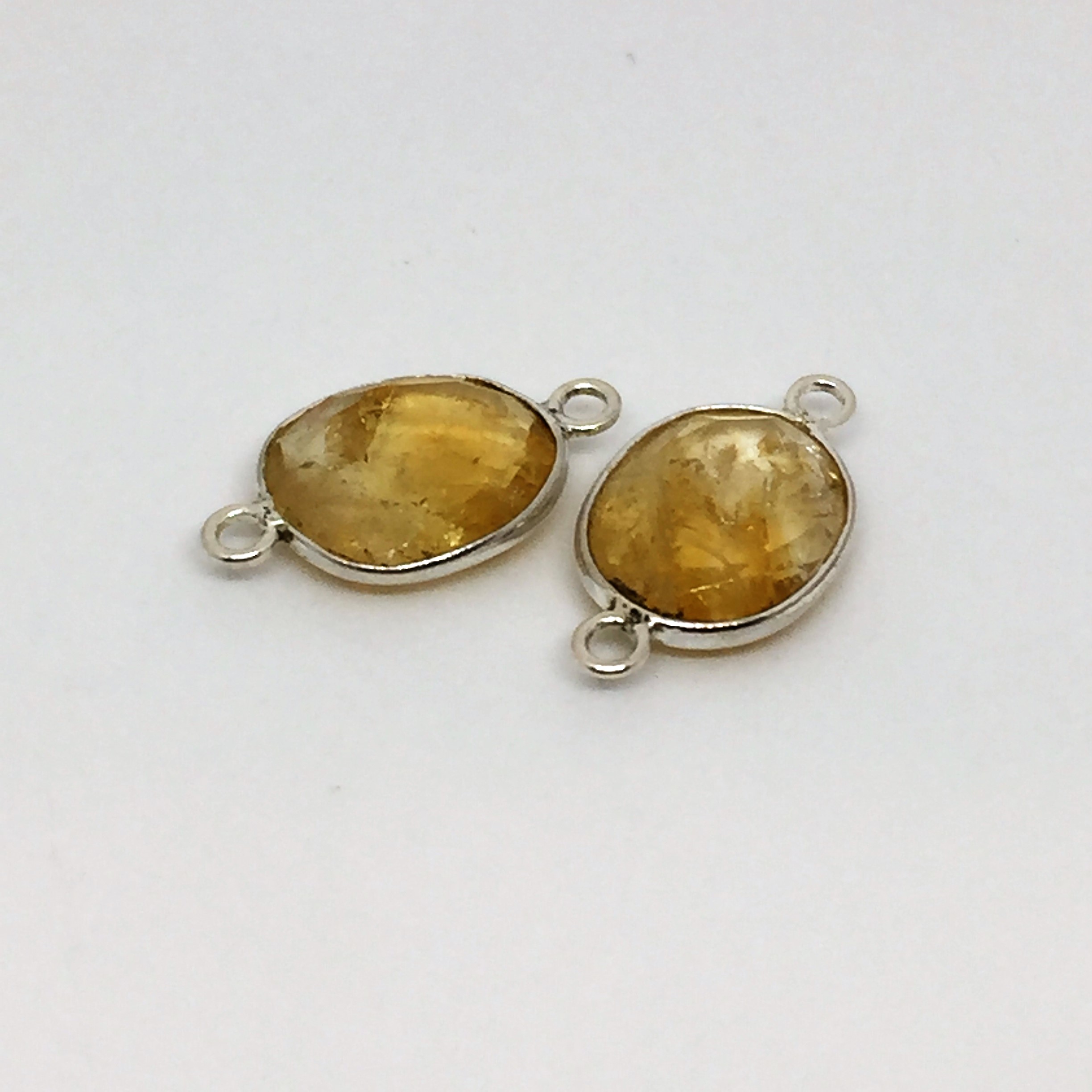Ovale citrine 9x12mm serti plaqué or 2 anneaux.