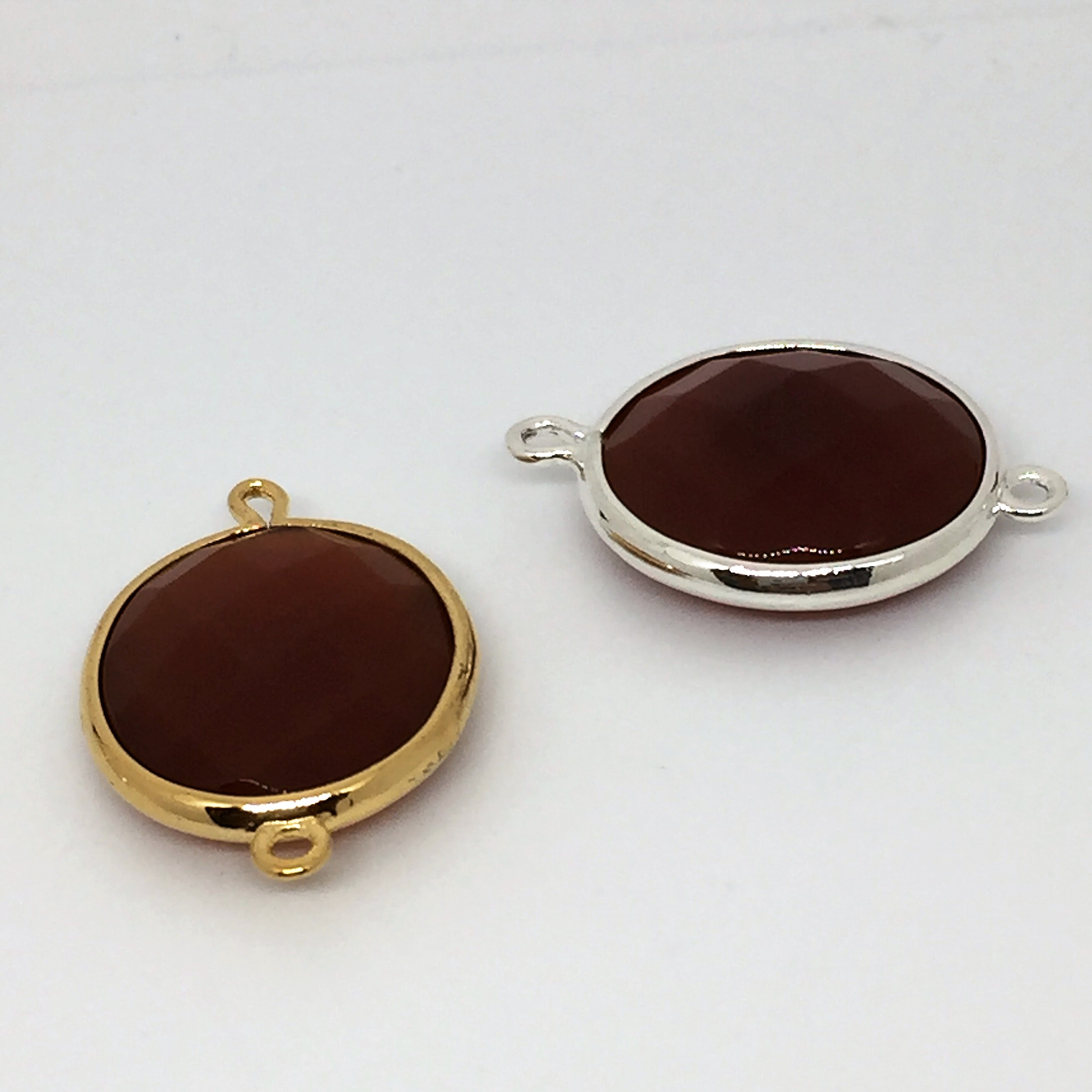 Connecteur 16x18mm en cornaline serti plaqué or et plaqué argent.