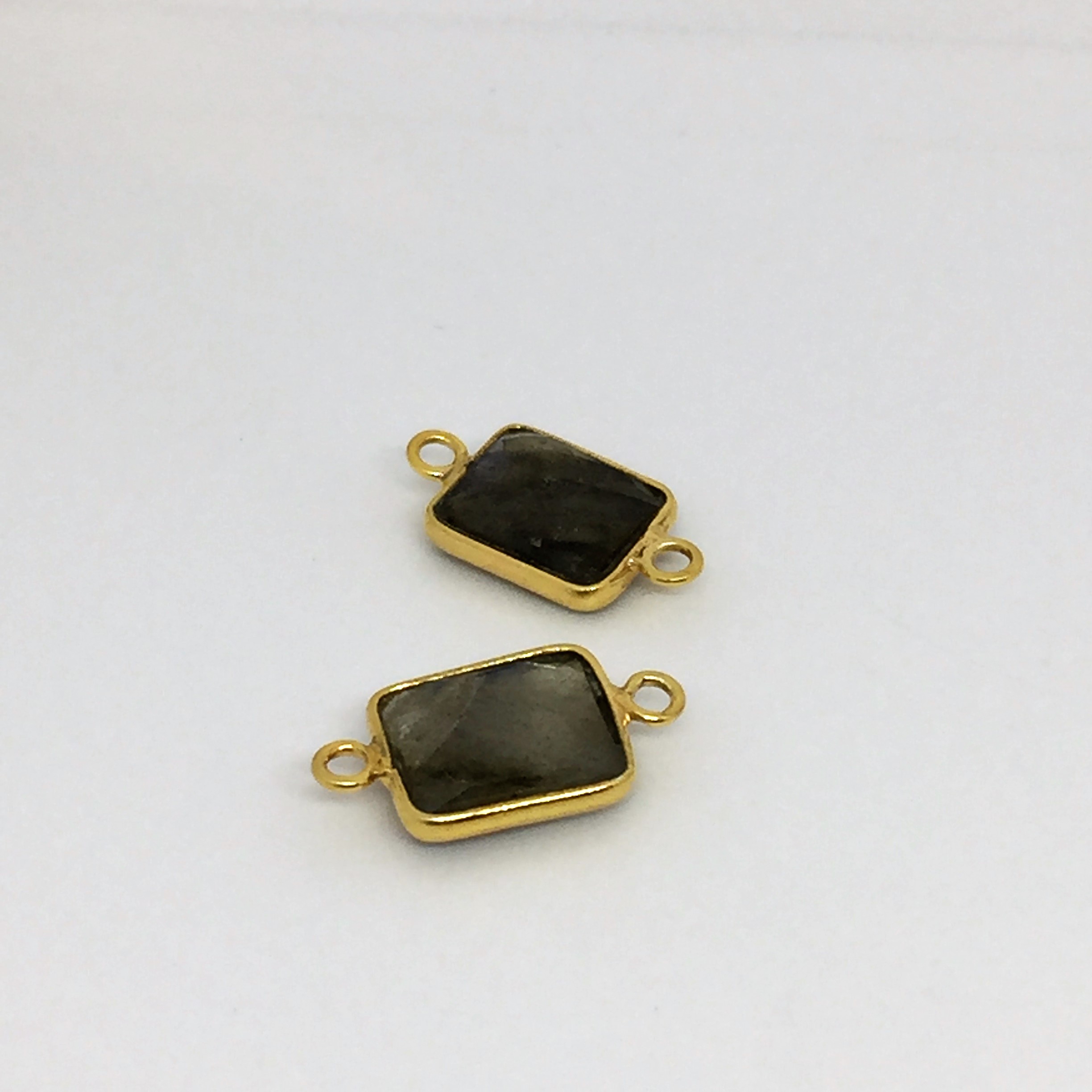 Rectangle en labradorite serti plaqué or 2 anneaux.