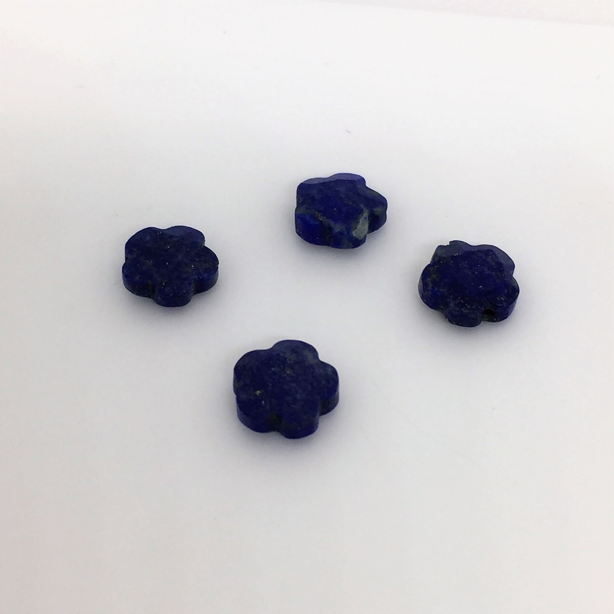 fleur en lapis lazuli de 9mm, perçage parfait de 0.5mm de diamètre.