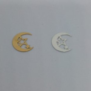 Lune et étoile 3x9mm plaqué or et plaqué argent