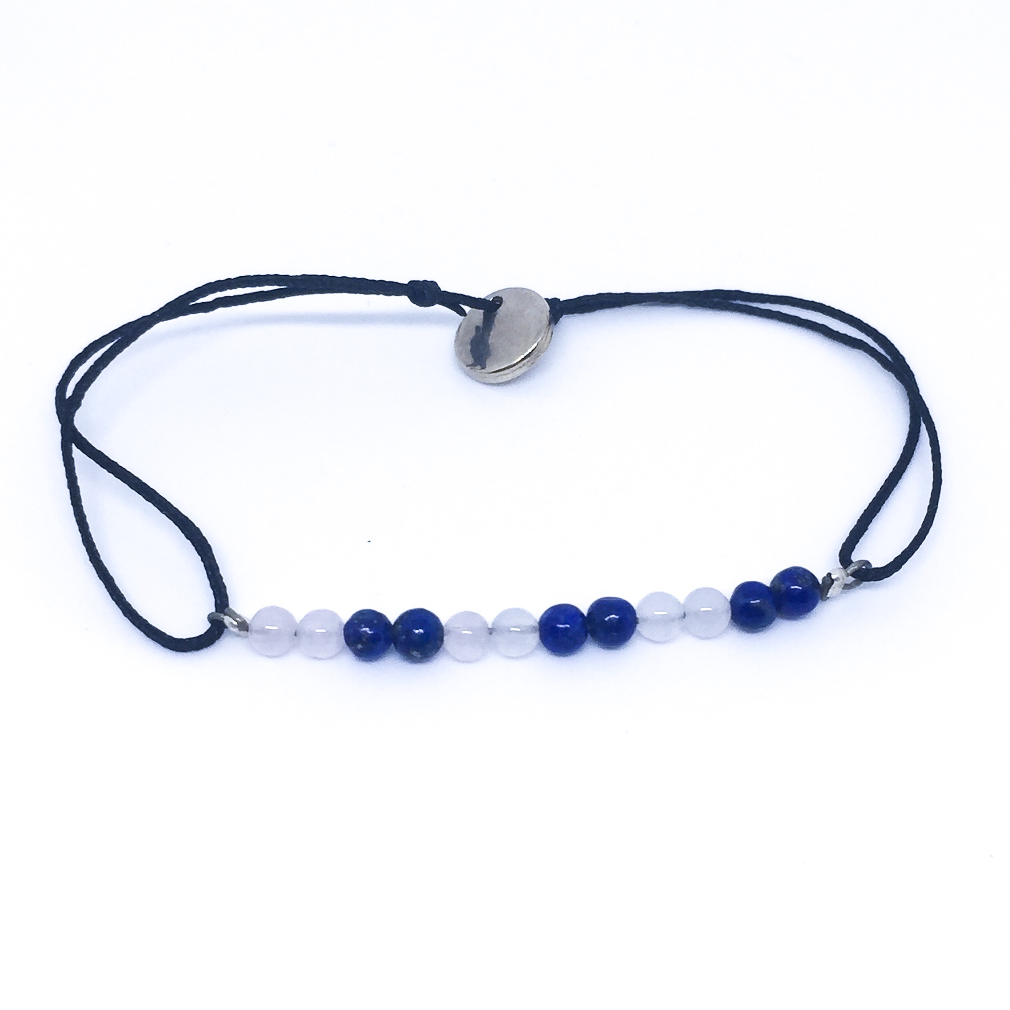 Ce bracelet est un bijou de lithothérapie, réglable grâce à ses nœuds coulissants.