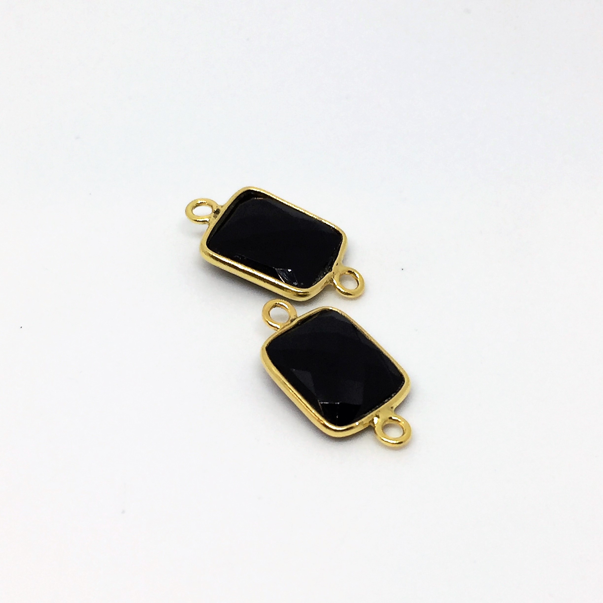 Rectangle en onyx serti plaqué or 2 anneaux.