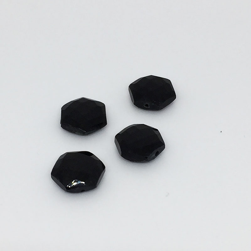 Hexagone en onyx de 8mm, perçage parfait de 0.5mm de diamètre.