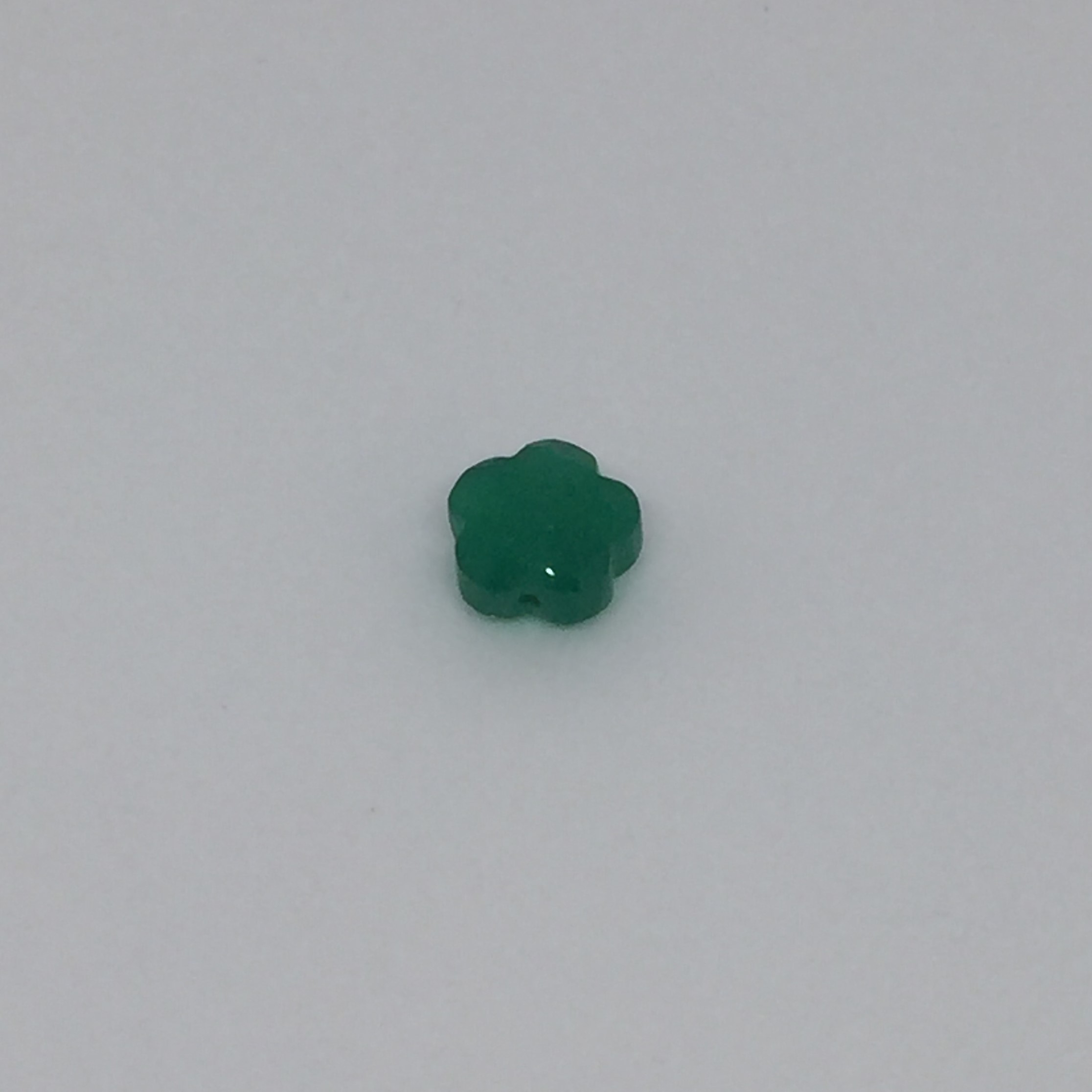 fleur en onyx vert de 9mm, perçage parfait de 0.5mm de diamètre.