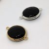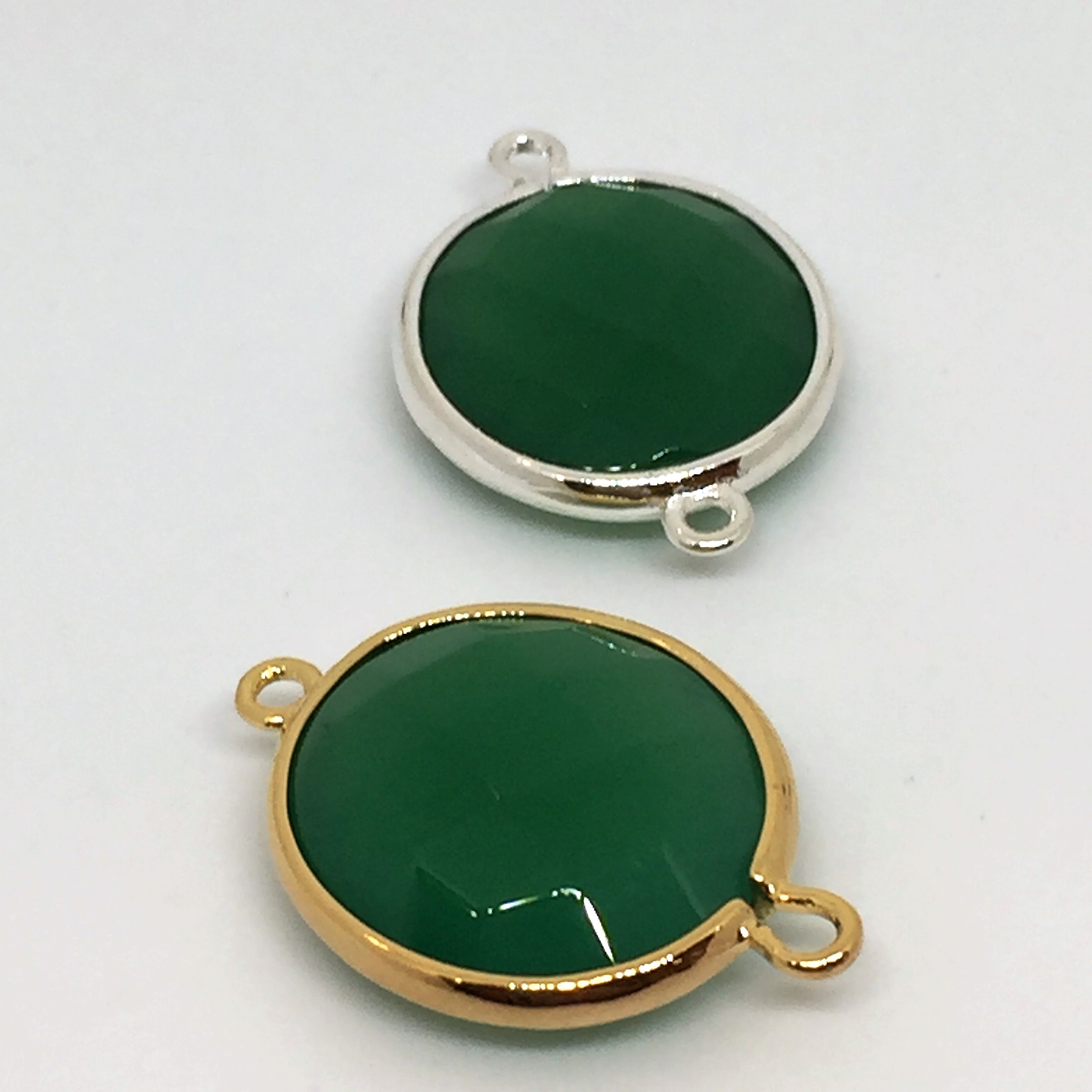 Connecteur 16x18mm en onyx vert serti plaqué or et plaqué argent.