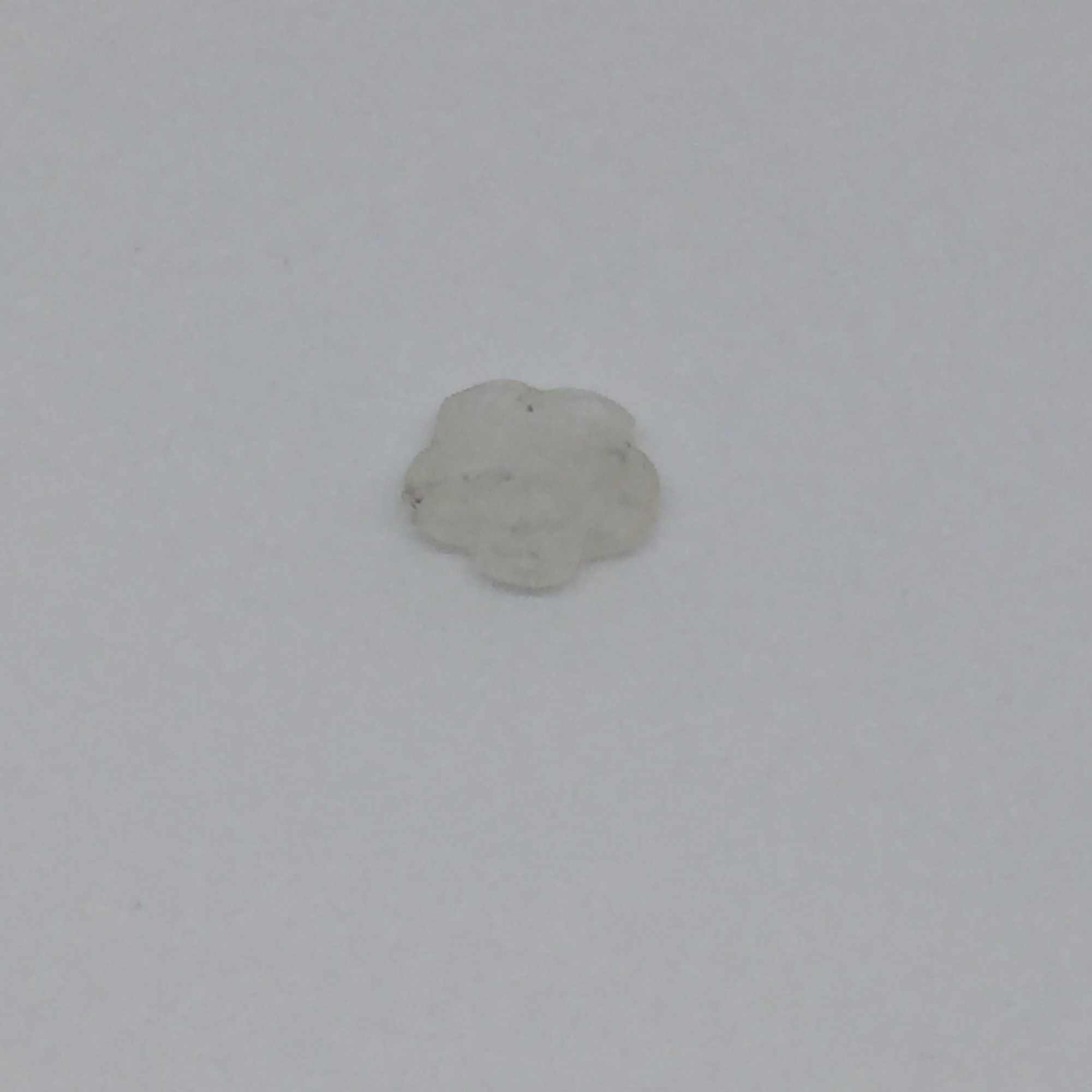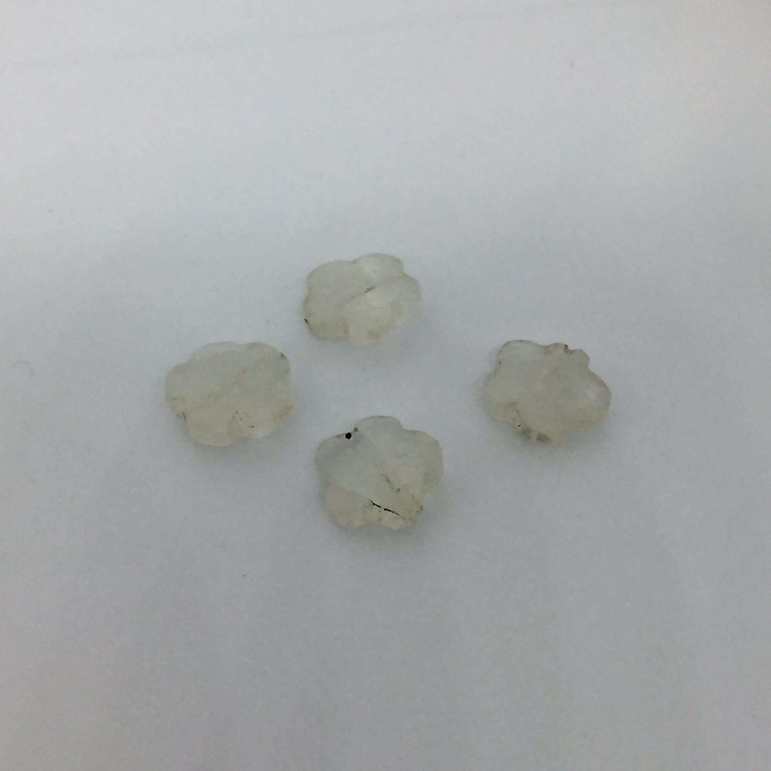 fleur en pierre de lune de 9mm, perçage parfait de 0.5mm de diamètre.