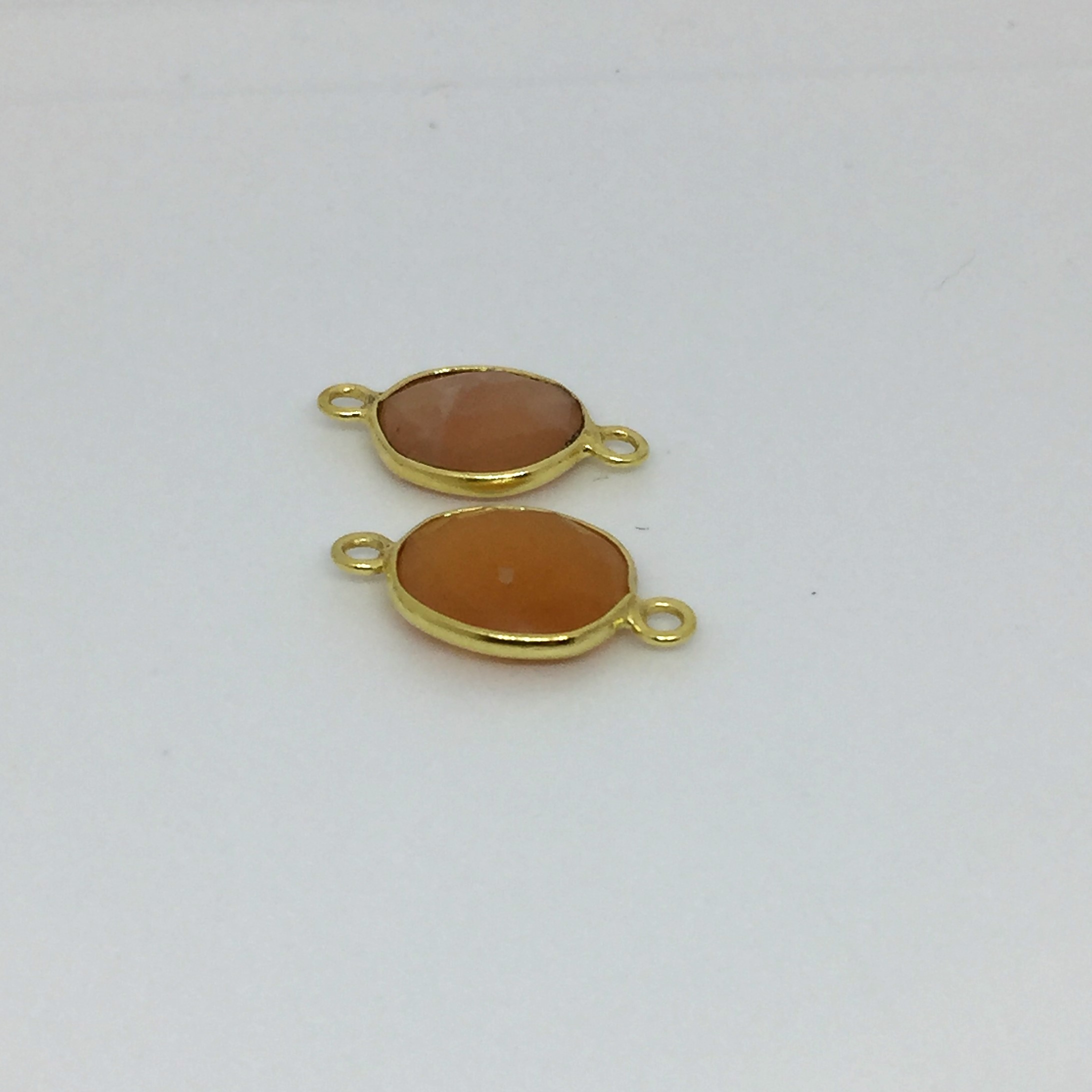 Ovale pierre de lune rose 9x12mm serti plaqué or 2 anneaux.