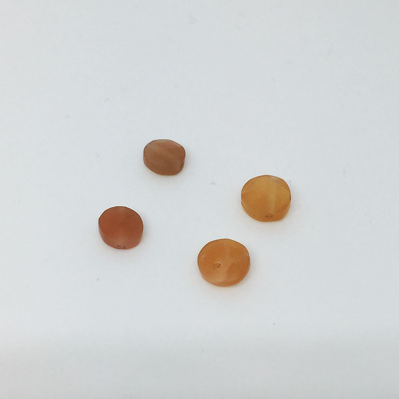 Pastille en pierre de lune rose de 6mm, perçage parfait de 0.5mm de diamètre.