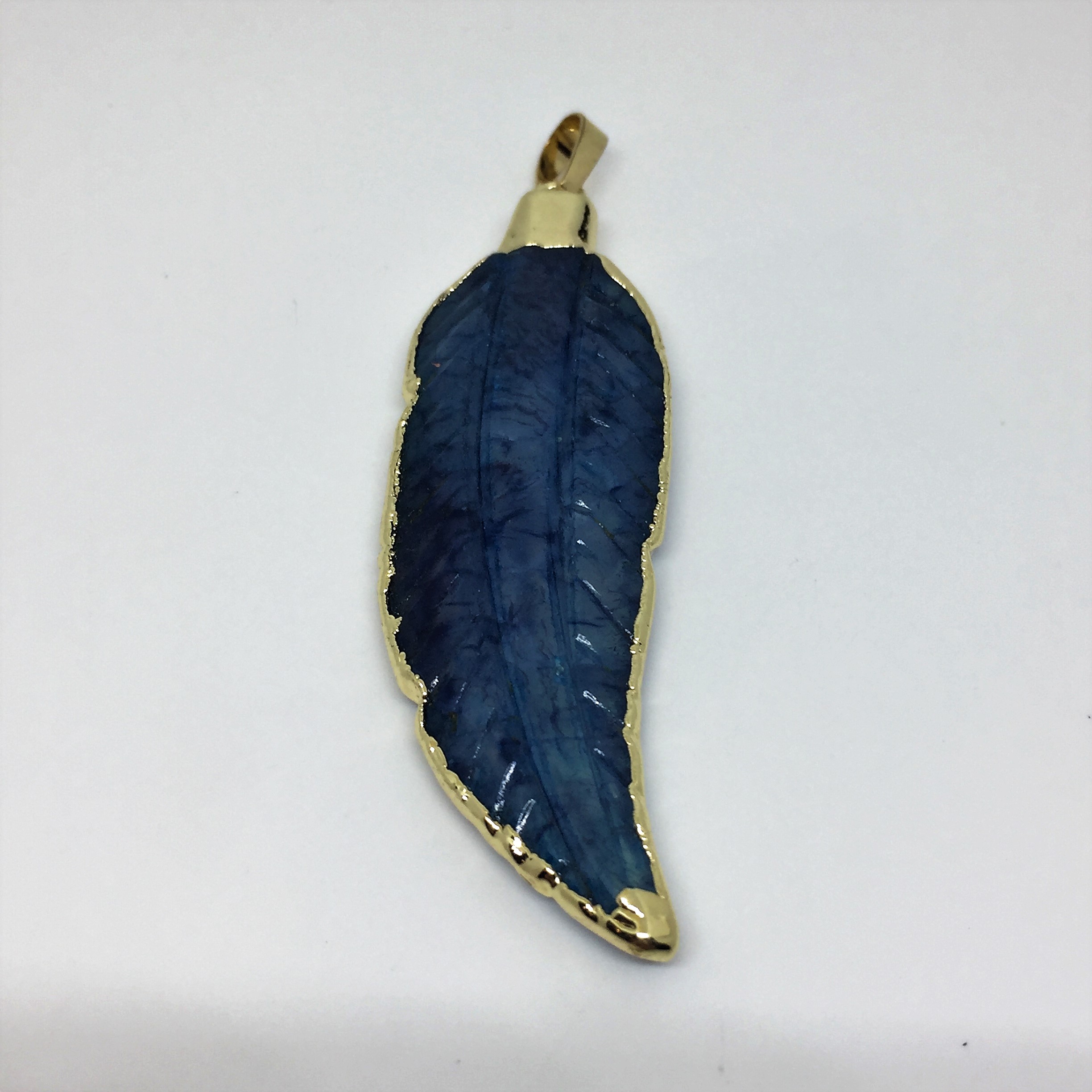 Plume en agate bleu 70x20mm.