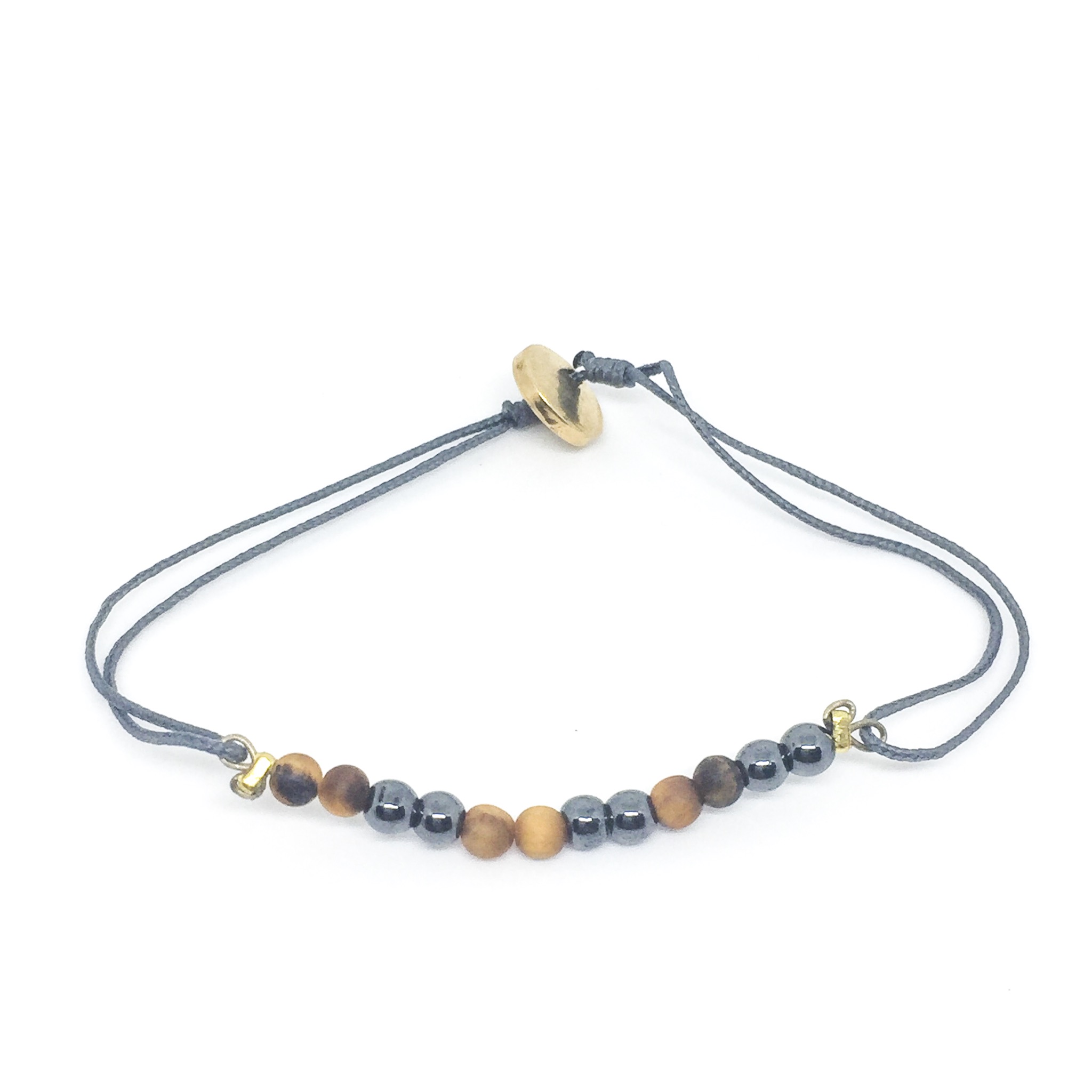 Ce bracelet est un bijou de lithothérapie, réglable grâce à ses nœuds coulissants.