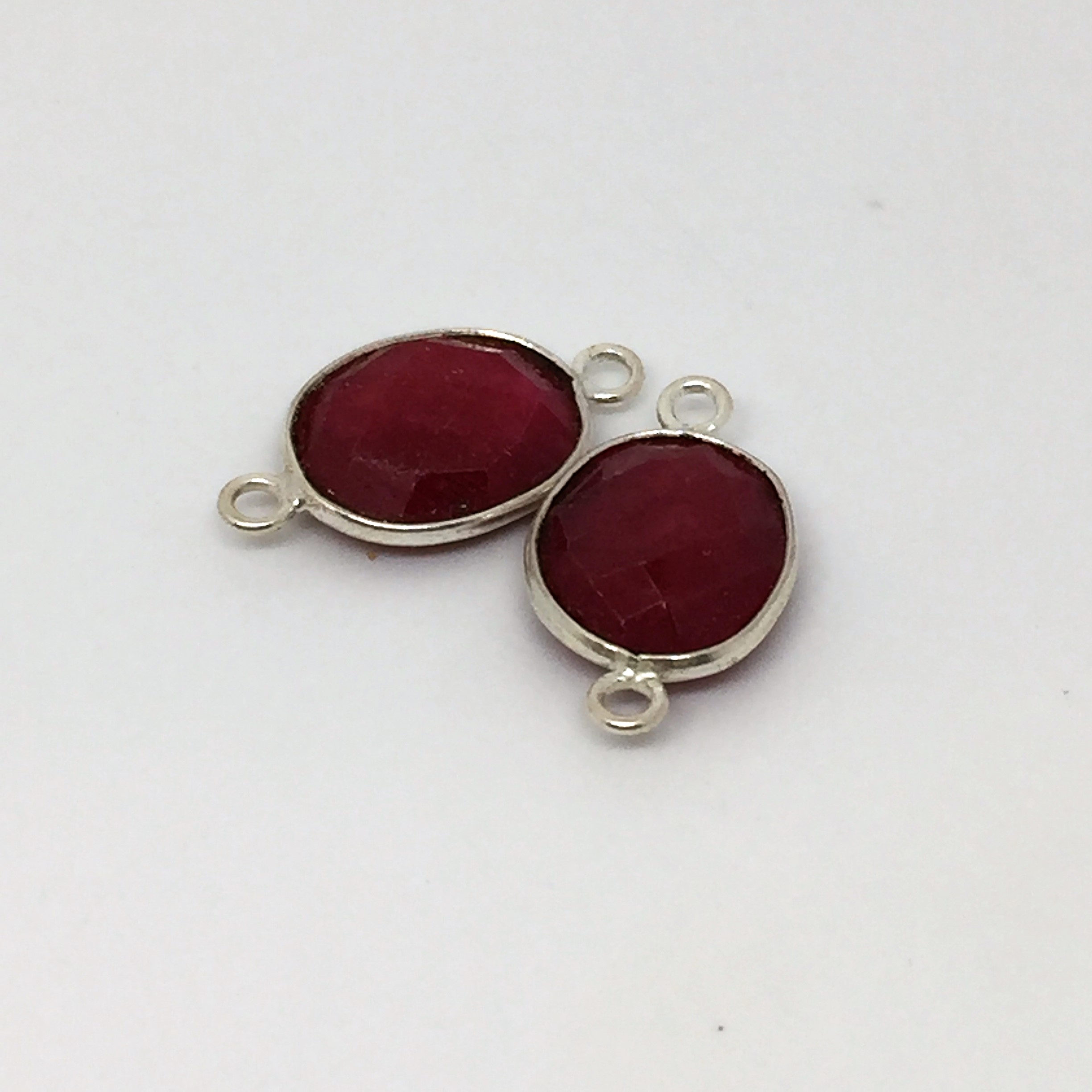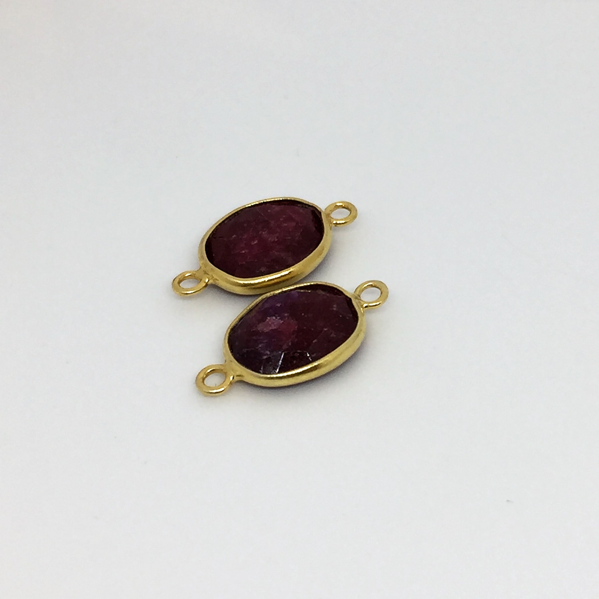 Ovale rubis 9x12mm serti plaqué or 2 anneaux.