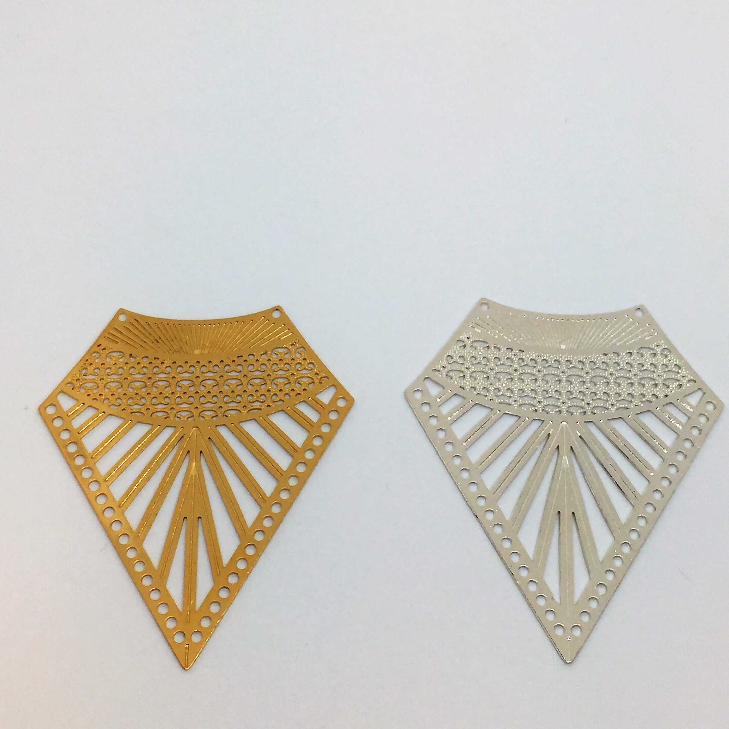 Triangle maya 40x47mm plaqué or et plaqué argent