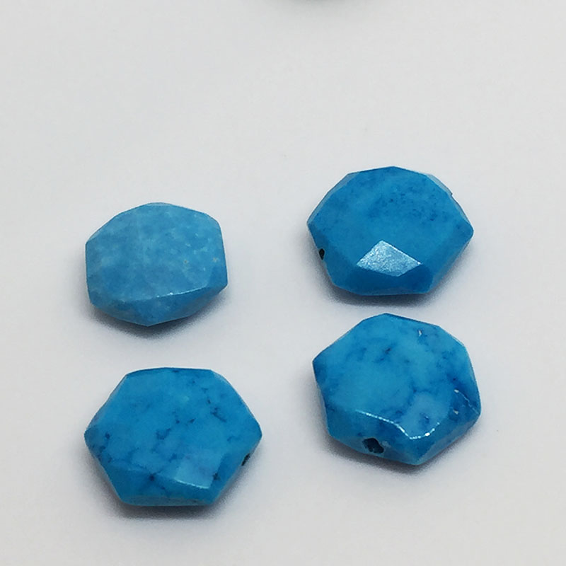 Hexagone en turquoise de 8mm, perçage parfait de 0.5mm de diamètre.